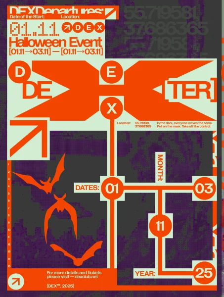 Флагманский ивент клуба DEX, сезона "FW 25/26", который пройдет по случаю празднования традиционного Хеллоуина, но без принудительного дресс-кода и прочих условностей.